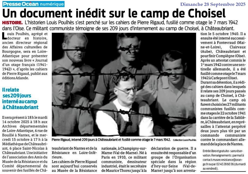 Voir : La Carrière de la Sablière - Les fusillés de la Blisière et de Bout de Forêt... - Les 50 Otages de Nantes