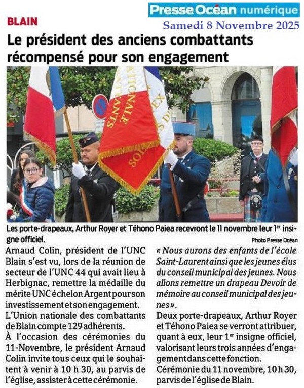 - Le président des anciens combattants récompensé - Presse Océan 8 novembre 2025