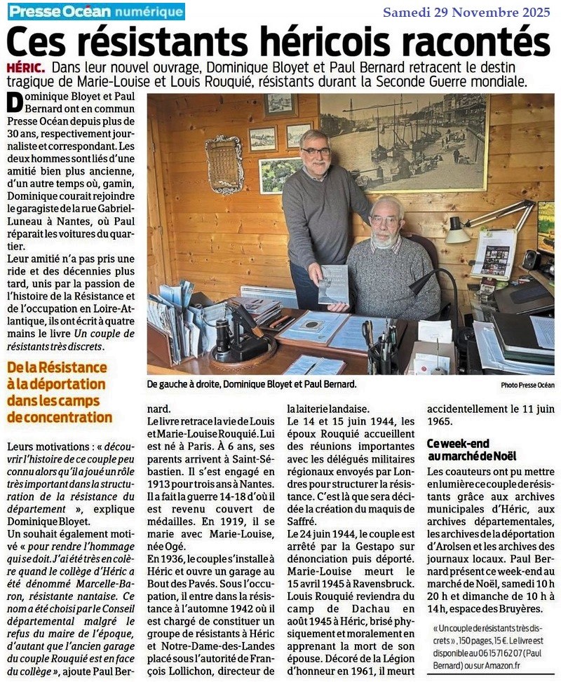 Ces résistants héricois racontés - Presse Océan 29 novembre 2025
