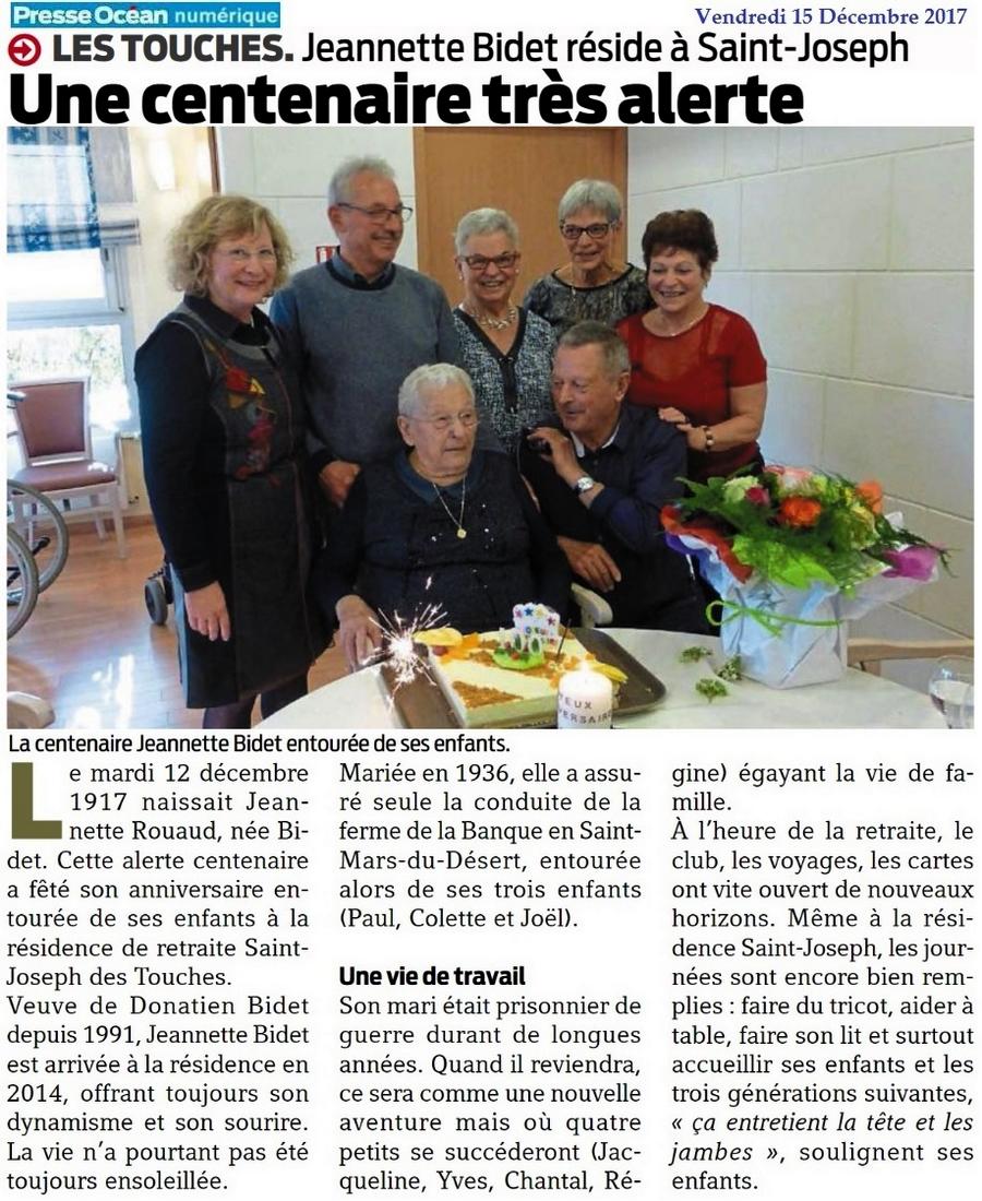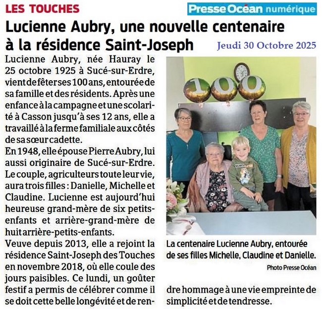 - Lucienne Aubry, une nouvelle centenaire à la résidence Saint-Joseph - Presse Océan 30 octobre 2025