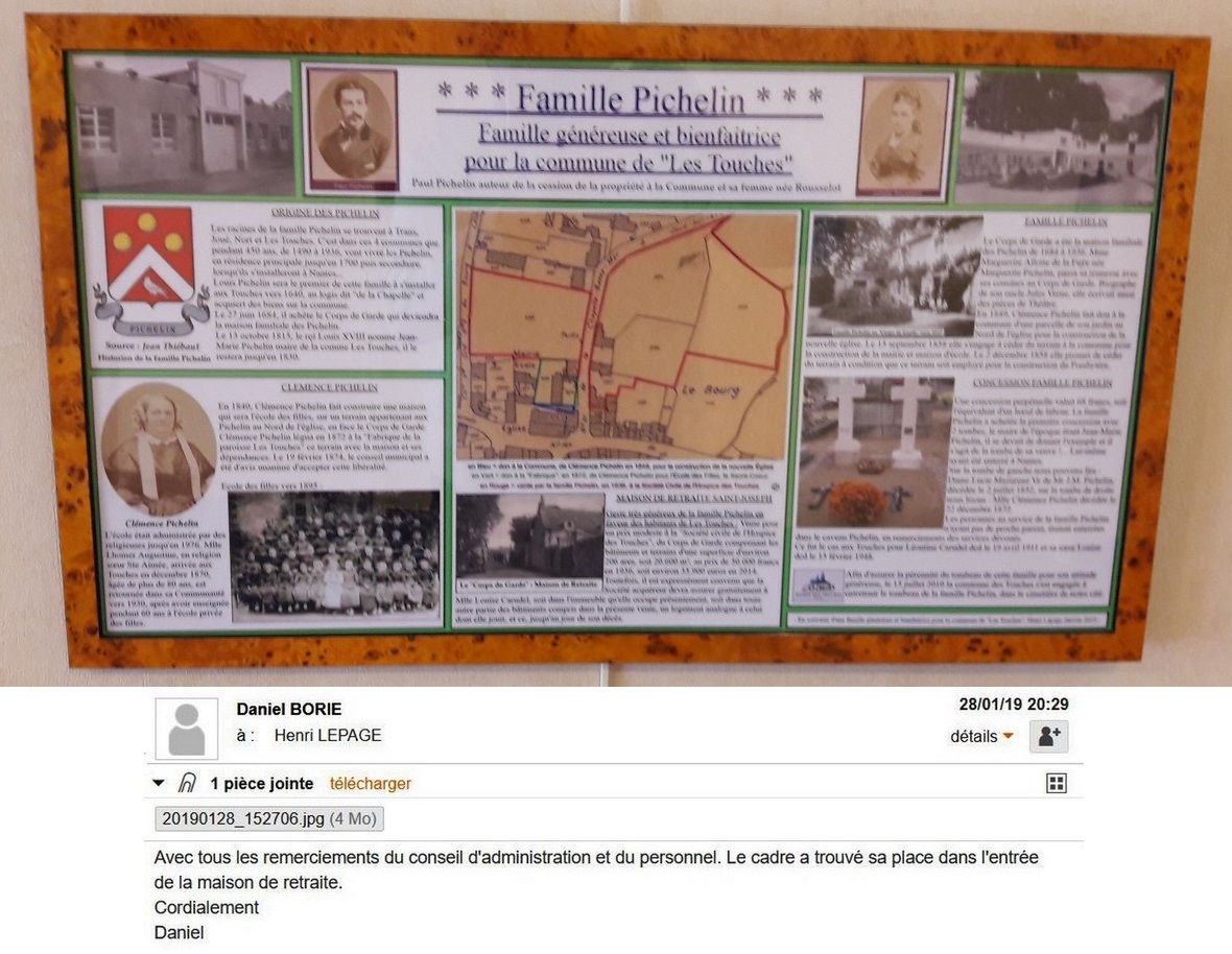 - Mise en place du tableau "Famille Pichelin" à la Maison de Retraite Saint-Joseph - 28 janvier 2019