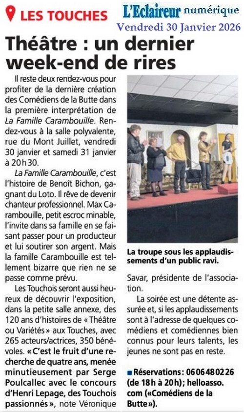 - Théâtre : un dernier week-end de rires - L’Eclaireur 30 janvier 2026