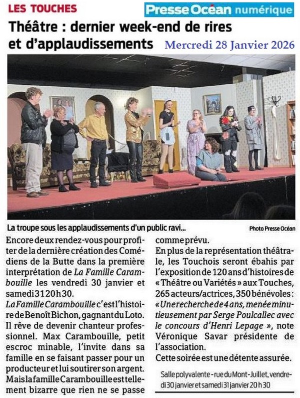 - Théâtre : dernier week-end de rires et d’applaudissements - Presse Océan 28 janvier 2026