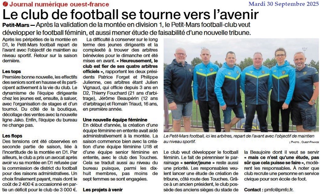 - Petit-Mars : Le club de football se tourne vers l’avenir - Ouest-France 30 septembre 2025