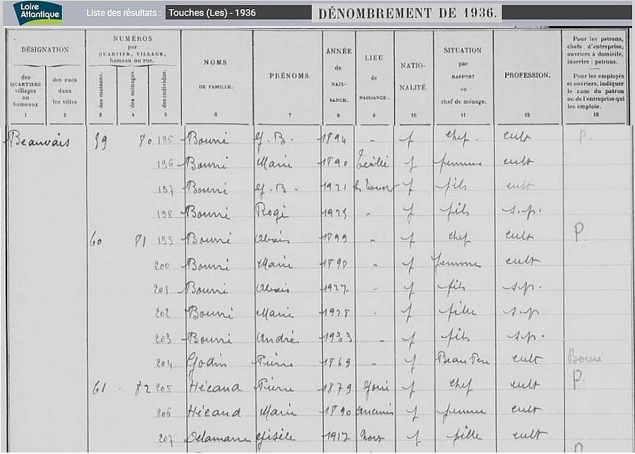 Habitants du village, recensement de 1936