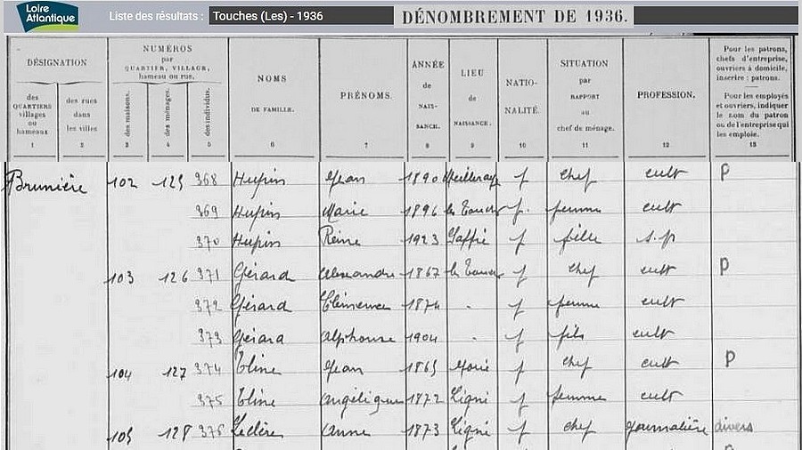 Habitants du village, recensement de 1936