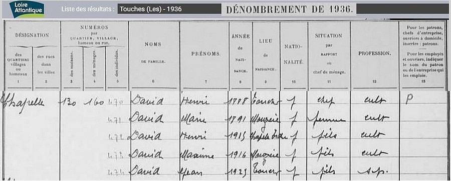 Habitants du village, recensement de 1936