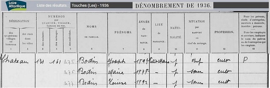 Habitants du village, recensement de 1936
