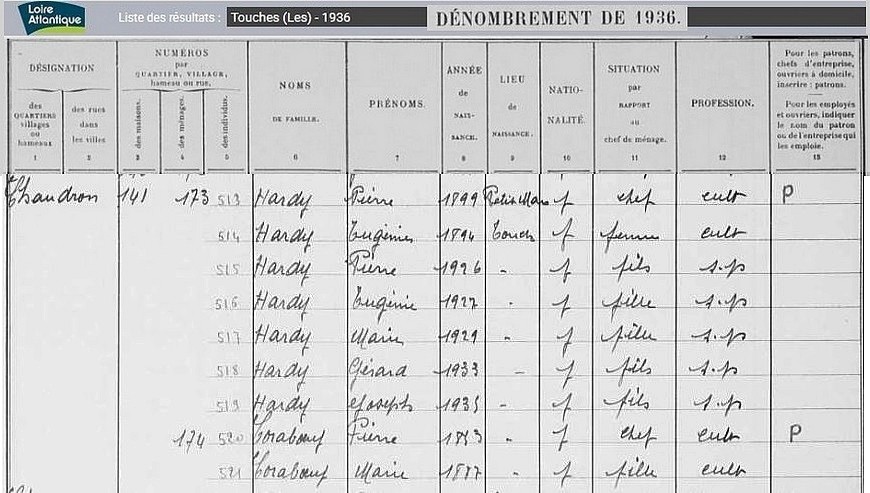 Habitants du village, recensement de 1936