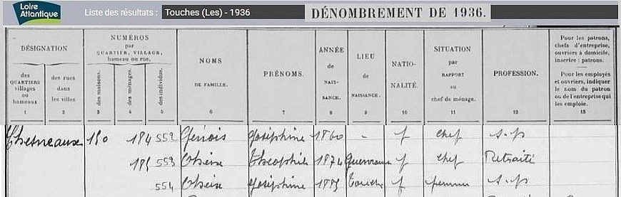 Habitants du village, recensement de 1936