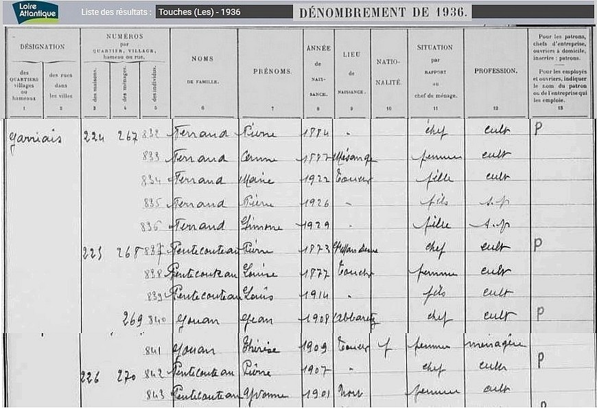 Habitants du village, recensement de 1936