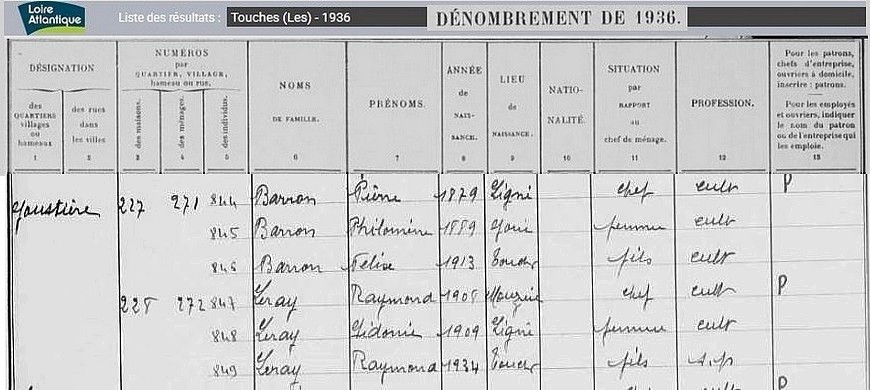 Habitants du village, recensement de 1936