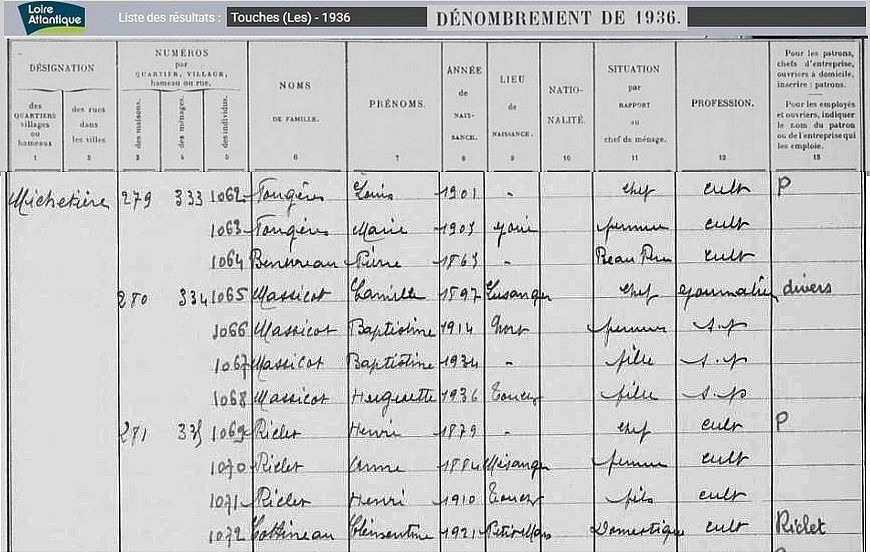 Habitants du village, recensement de 1936