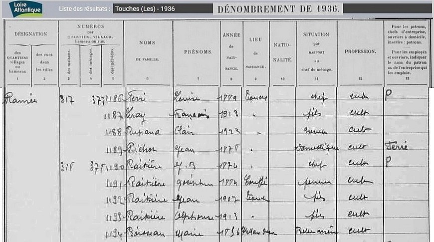 Habitants du village, recensement de 1936