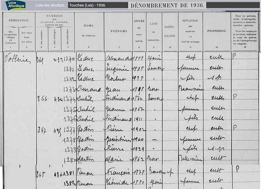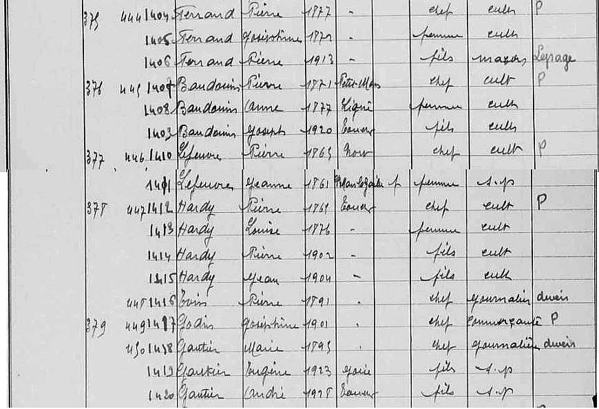 Habitants du village, recensement de 1936 - 3/3