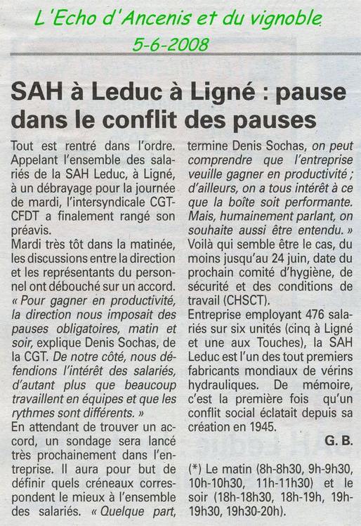 Pendant des années, entre 1950 et 1965, il y avait une coutume bien établie, le personnel descendait avec Bernard Leduc dans sa cave, même si il était absent, pour prendre un ou deux verres de petit vin de pays ou de cidre, à 11 heures et à 16 heures, environ 10 minutes de pause. C’était l’occasion d’arroser une fête ou un anniversaire et de discuter avec Bernard librement. La descente à la cave s’est terminée, lorsque l’effectif a dépassé la quinzaine, après c’était à chacun d’amener sa boisson, la pause étant maintenue à 11 et 16 heures.