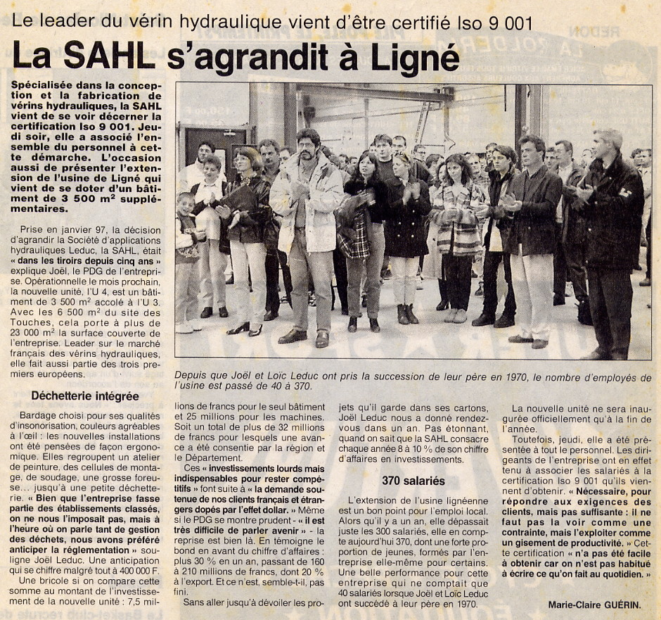- Bien sûr l’usine des Touches est devenue trop petite. C’est pourquoi en 1977 Bernard Leduc avait décidé de construire une nouvelle unité à Ligné. Bernard Leduc a toujours envisagé l’avenir avec confiance même dans les moments les plus difficiles.