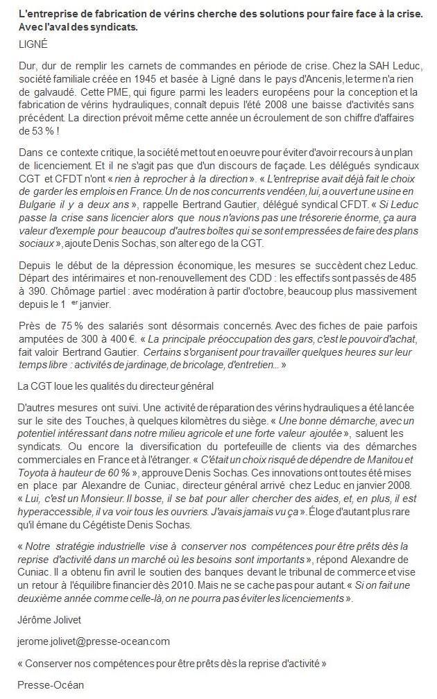 Aux Touches, petite commune rurale de 1400 habitants, à 30 km au nord de Nantes, une entreprise familiale, la société d’applications hydrauliques Leduc a pris depuis quelques années une place respectable sur le marché français du vérin hydraulique après s’être lancé à fond dans la commande numérique. Le dynamisme exceptionnel de cette entreprise, c’est d’abord celui d’un homme qui sera secondé de plus en plus par ses fils.