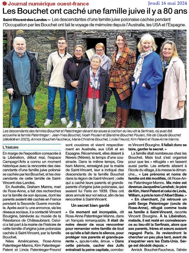 Les Bouchet ont caché une famille juive il y a 80 ans - Ouest-France 16 mai 2024 - 1/2