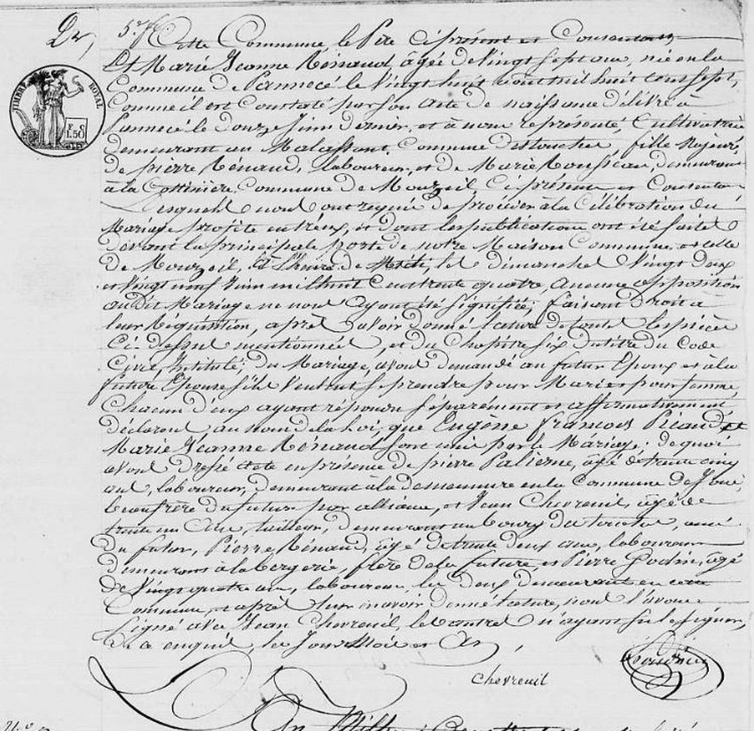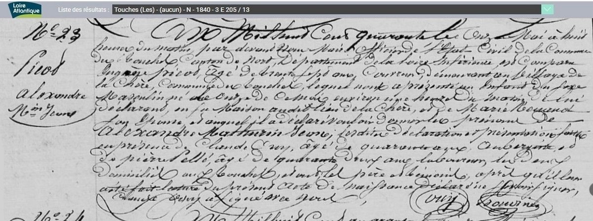 Marié le 22 juillet 1834 avec Marie Renaud. Le Malassan était entre la Chère et la Lardière. La route qui mène à Joué sur Erdre y passait auparavant... Il n’existe plus, et dorénavant son emplacement se trouve en plein milieu des champs !