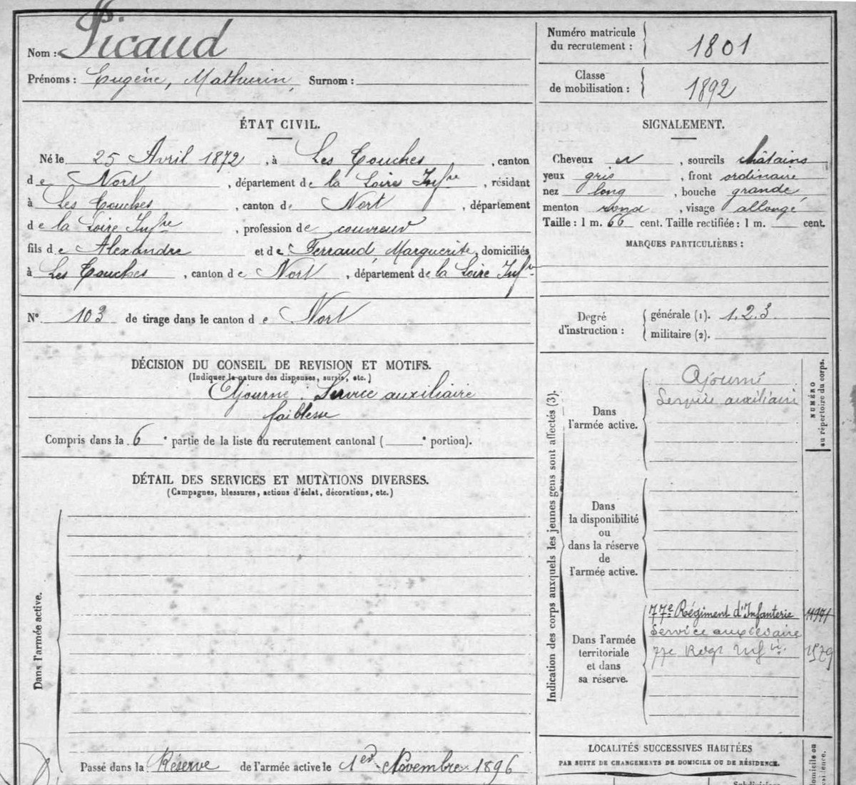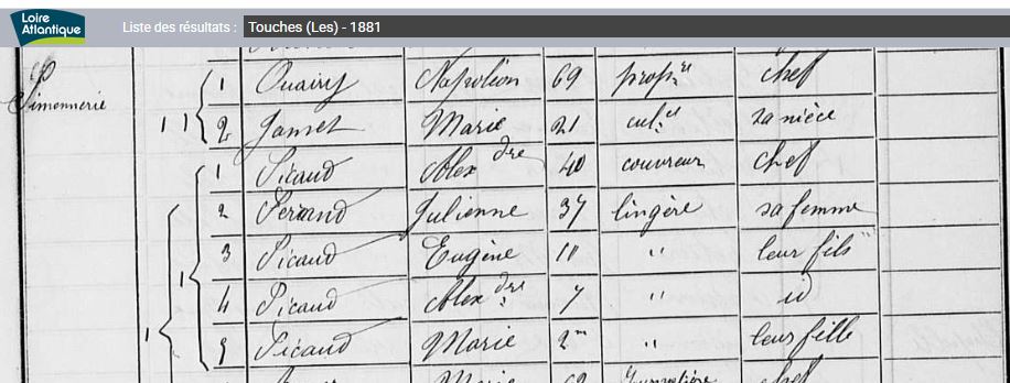 Sur l’extrait de 1866, Eugène avait 64 ans et son fils Alexandre couvreur né le 11 mai 1840 avait 26 ans.