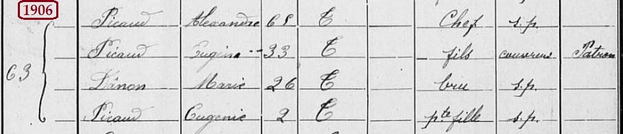 En 1896 Alexandre à 56 ans et son fils Eugène 24 ans. En 1906, Eugène 34 ans, remplace son père qui a 66 ans.