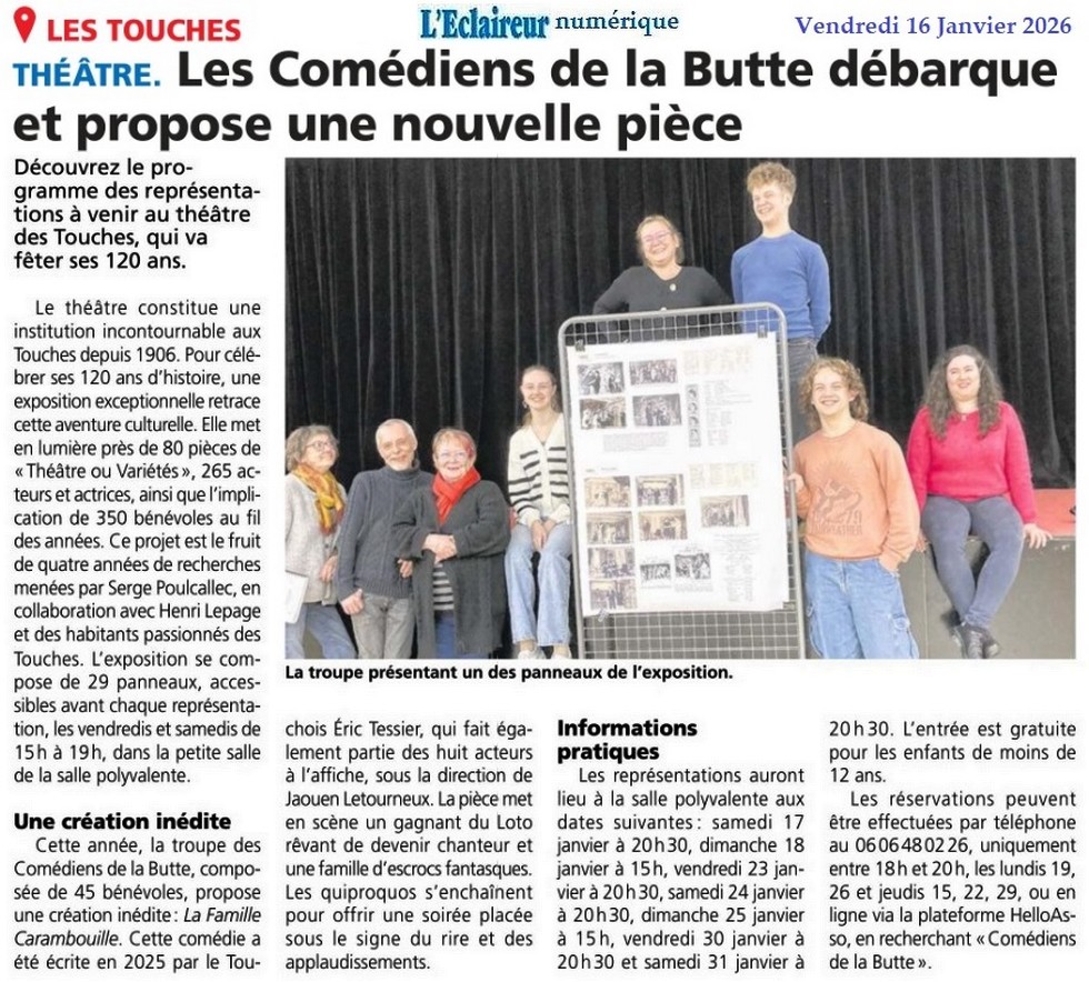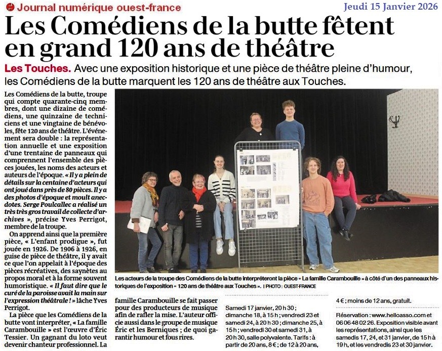 Les Comédiens de la butte fêtent en grand 120 ans de théâtre - Ouest-France 15 janvier 2026