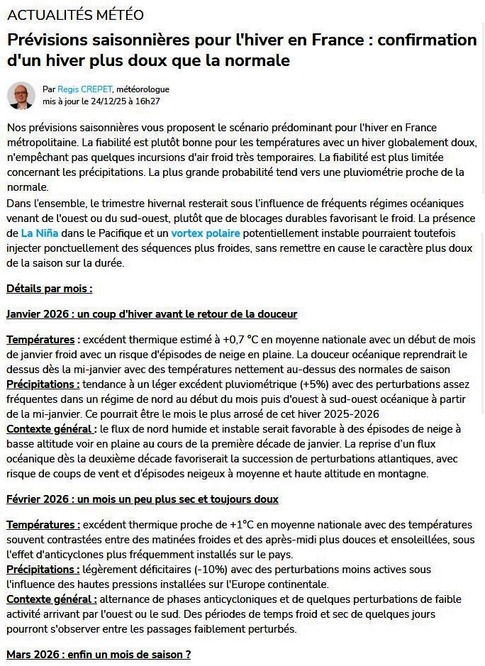 Prévisions pour l’hiver en France