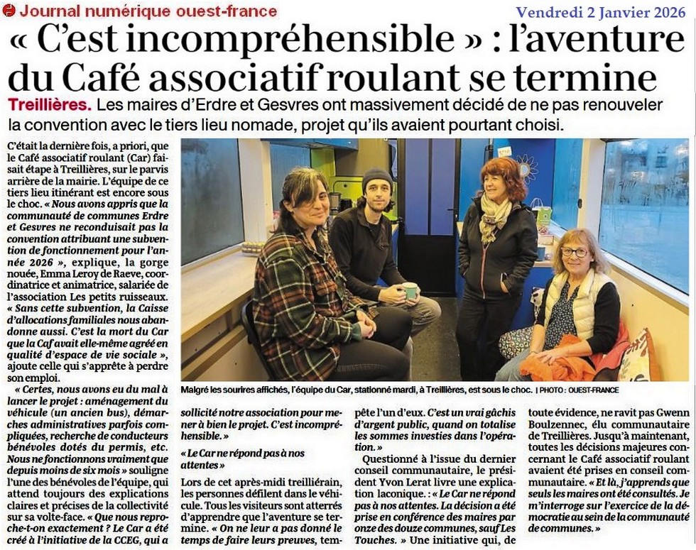 L’aventure du Café associatif roulant se termine - Ouest-France 2 janvier 2026