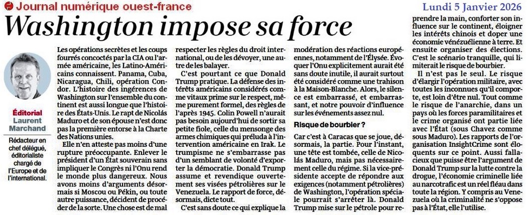 Washington impode sa force - Ouest-France 5 janvier 2026