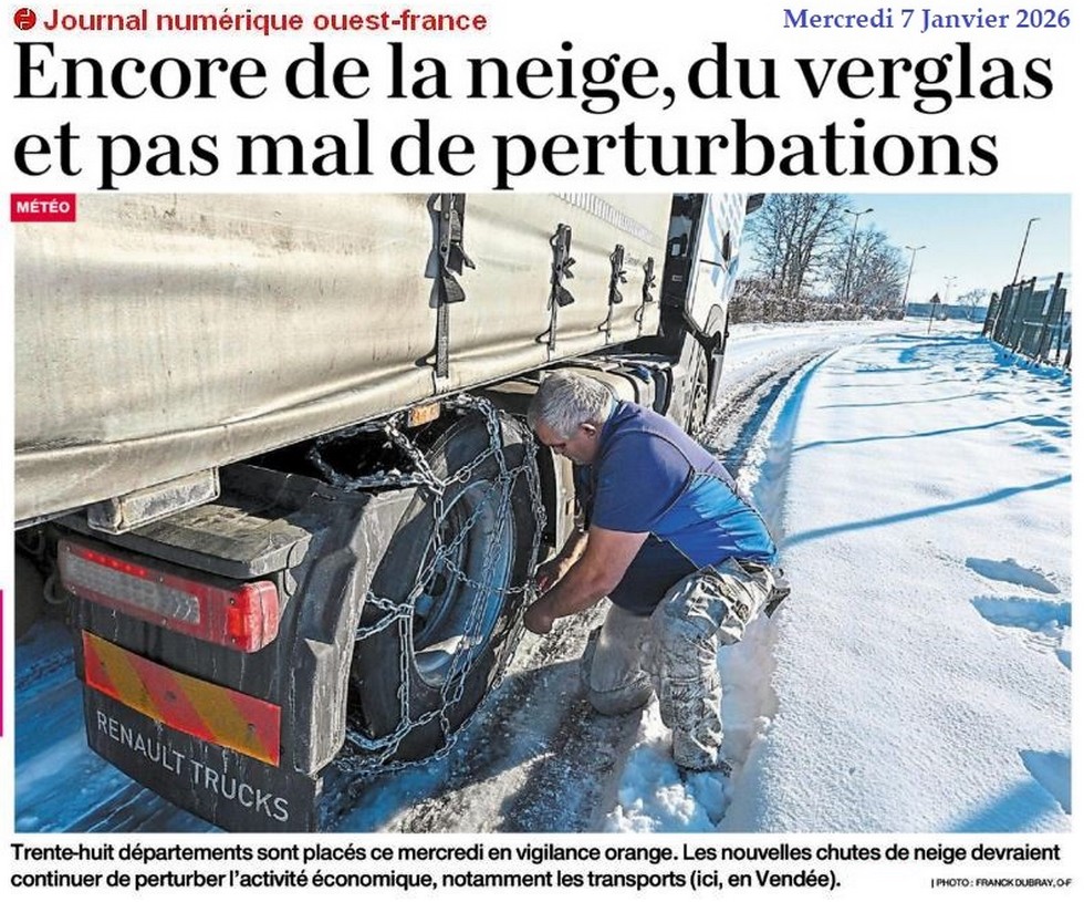 Encore de la neige, du verglas et pas mal de perturbations - Ouest-France 7 janvier 2026