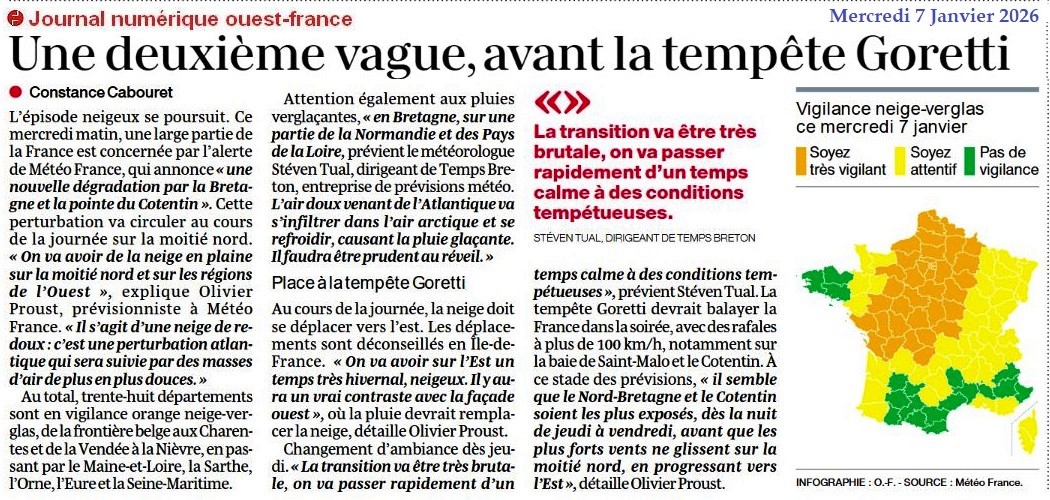 Une deuxième vague, avant la tempête Goretti - Ouest-France 7 janvier 2026