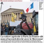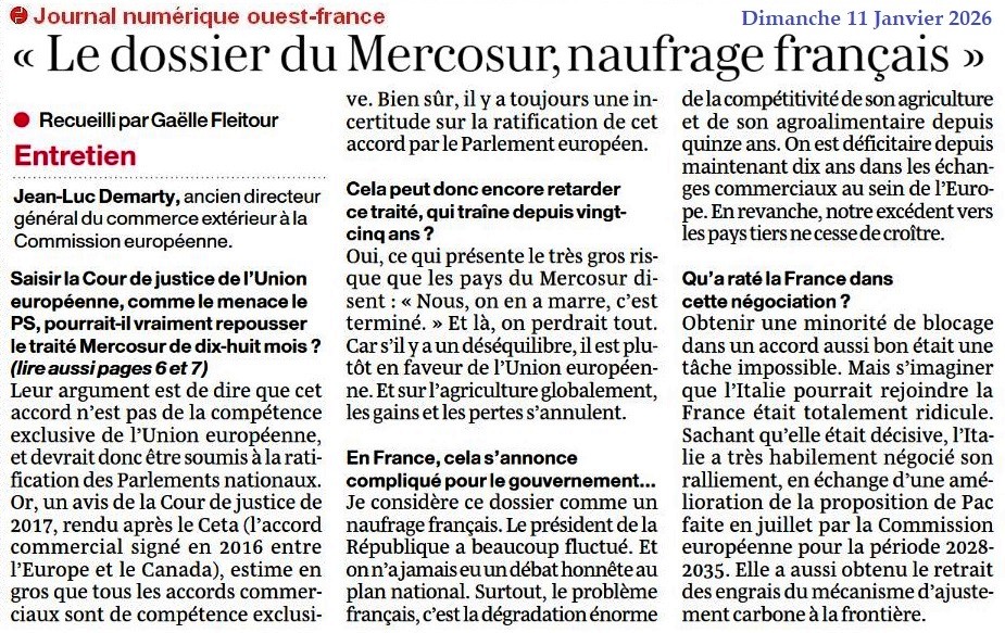 « Le dossier du Mercosur, naufrage français » - Ouest-France 11 janvier 2026