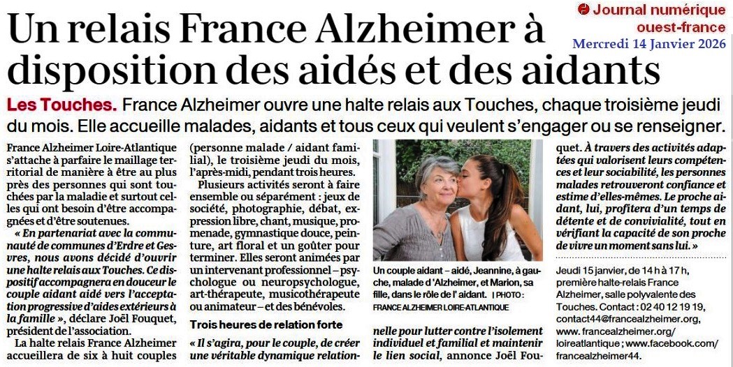 Un relais France Alzheimer - Ouest-France 14 janvier 2026