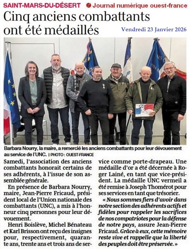Cinq anciens combattants ont été médaillés - L’Eclaireur 23 janvier 2026
