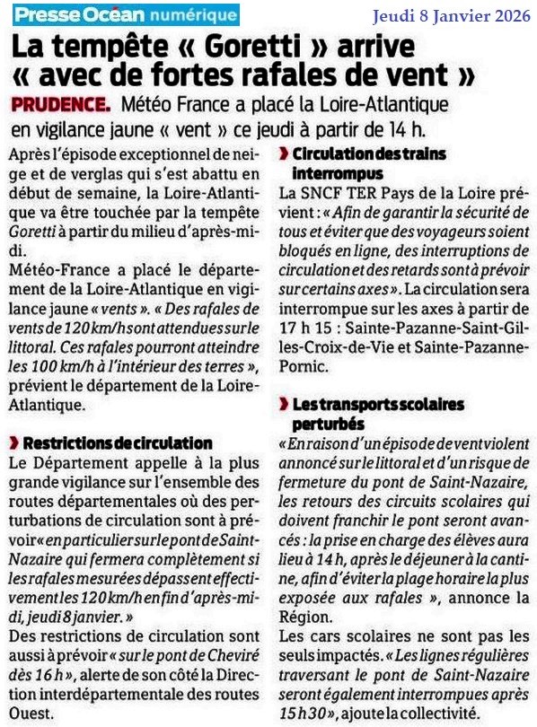 La tempête « Goretti » arrive « avec de fortes rafales de vent » - Presse Océan 8 janvier 2026