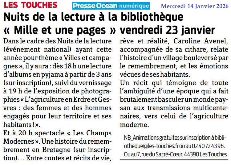 Nuits de la lecture à la bibliothèque - Presse Océan 14 janvier 2026