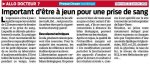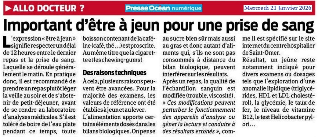 Important d’être à jeun pour une prise de sang - Presse Océan 21 janvier 2026