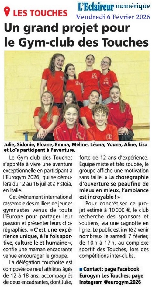 Un grand projet pour le Gym-club des Touches - L’Eclaireur 6 février 2026