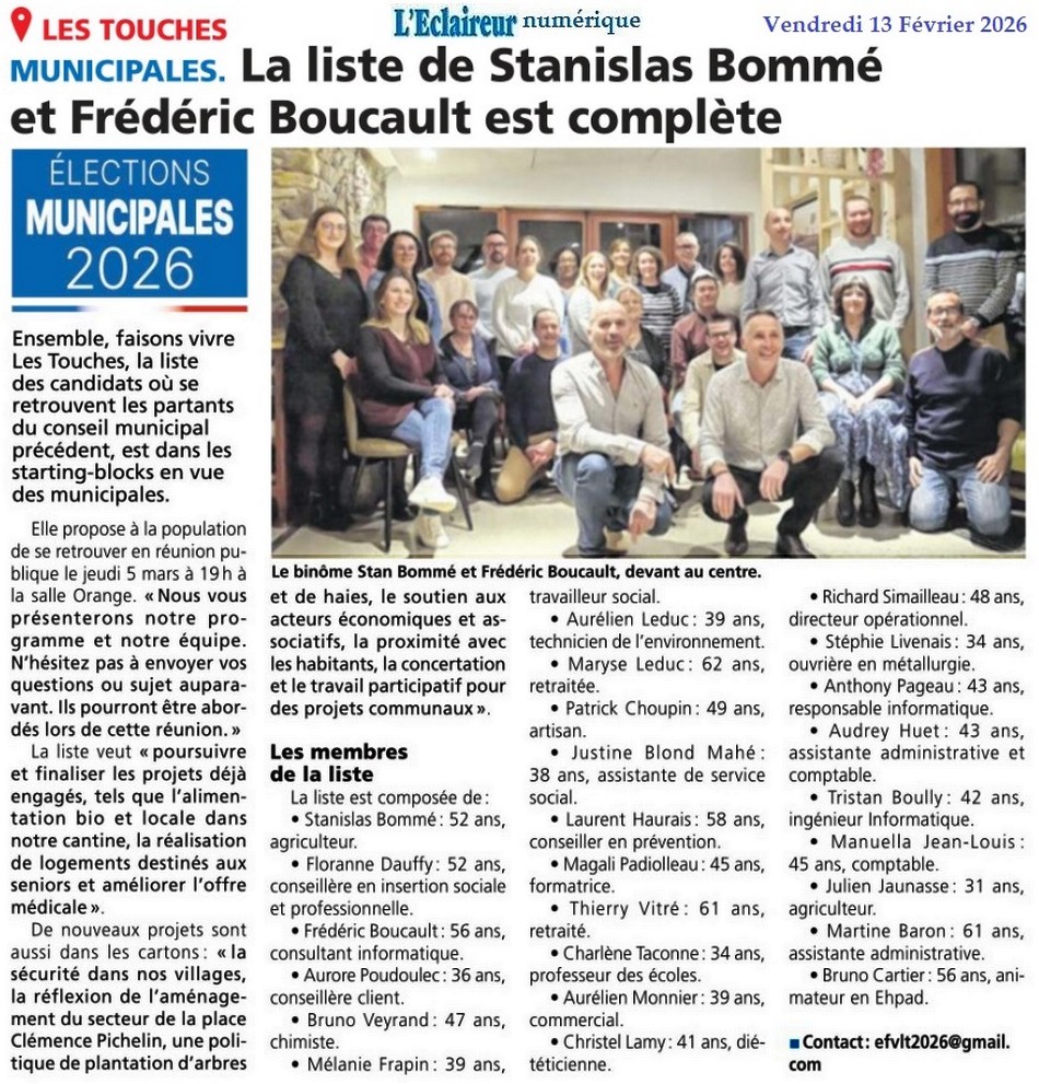 La liste « Ensemble, faisons vivre Les Touches » - Presse Océan 10 février 2026 - 2/4