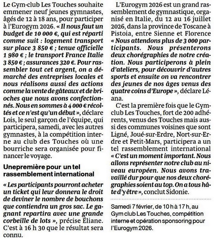 Une compétition pour financer leur participation à l’Eurogym - Ouest-France 6 février 2026 - 1/3