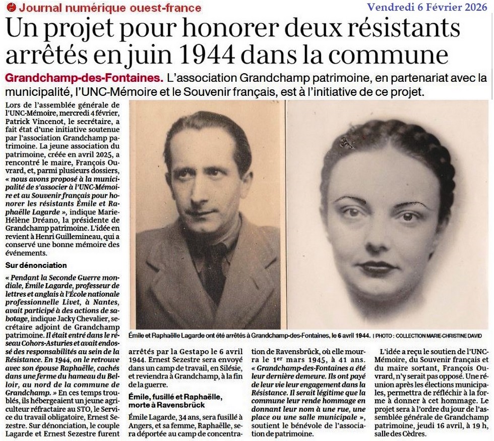 Un projet pour honorer deux résistants arrêtés en juin 1944 - Ouest-France 6 février 2026