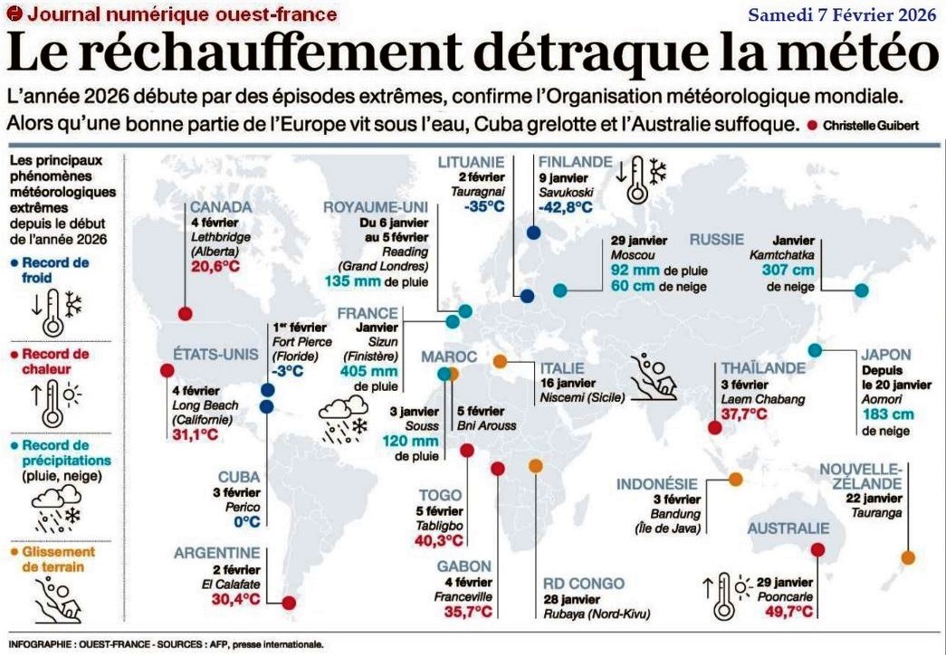 Le réchauffement détraque la météo - Ouest-France 7 février 2026