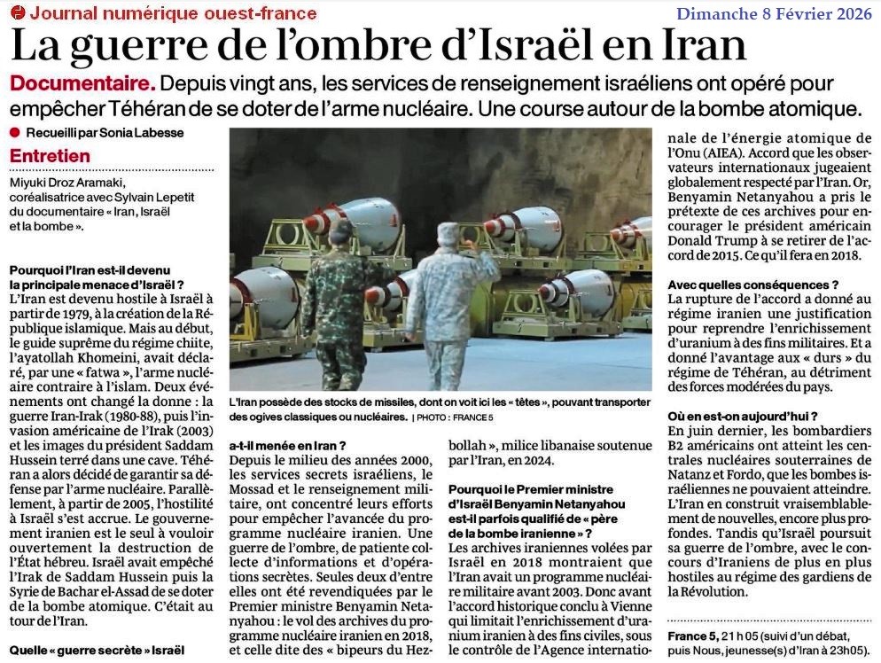 La guerre de l’ombre d’Israël en Iran - Ouest-France 8 février 2025