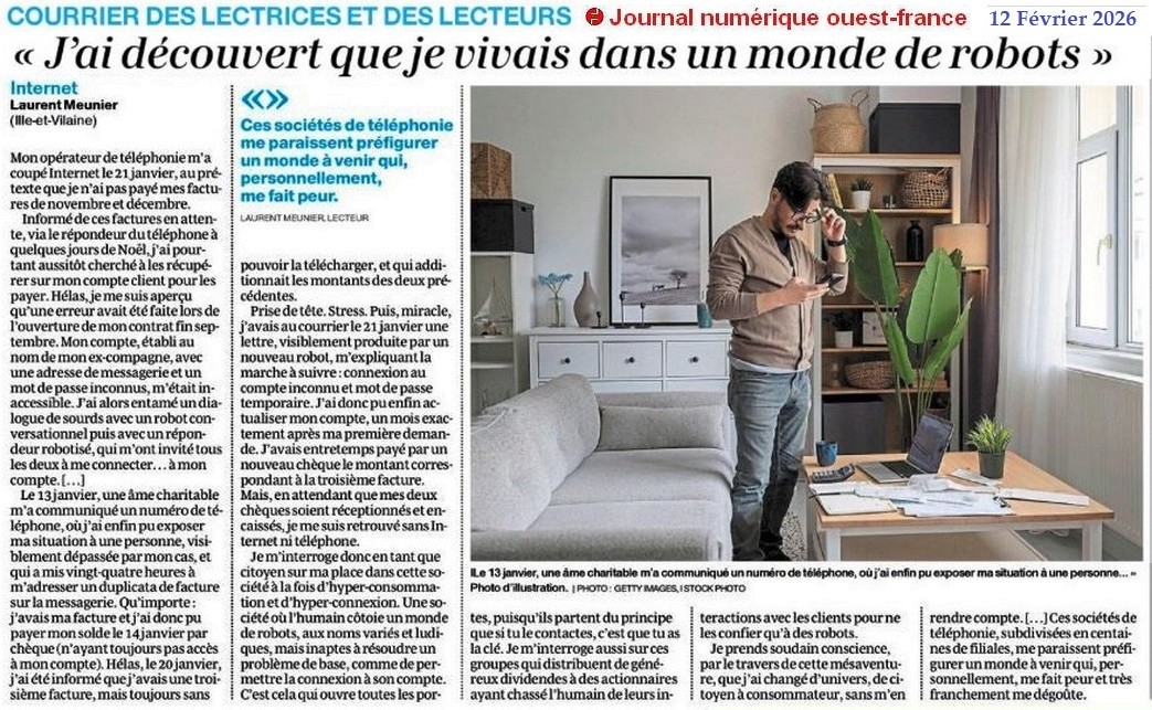 « J’ai découvert que je vivais dans un monde de robots » - Ouest-France 12 février 2026