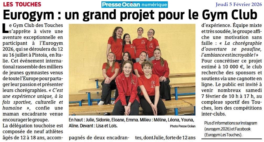 Eurogym : un grand projet pour le Gym Club - Presse Océan 5 février2026