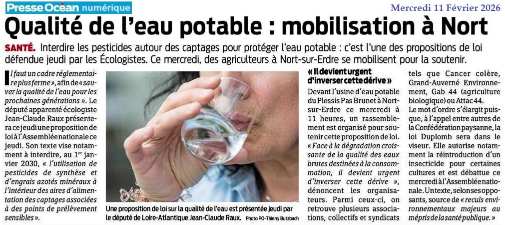 Qualité de l’eau potable : mobilisation à Nort - Presse Océan 11 février 2026