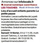 Lieu d’accueil enfants parents La petite pause - Ouest-France 10 février 2026