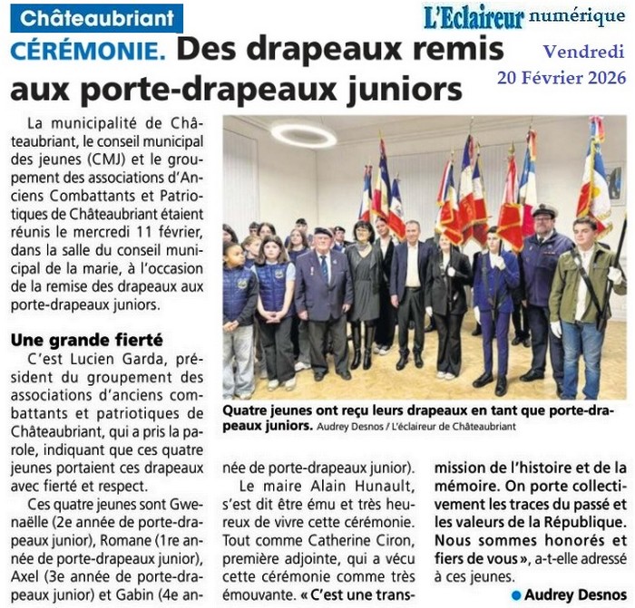 Des drapeaux remis aux porte-drapeaux juniors - L’Eclaireur 20 février 2026
