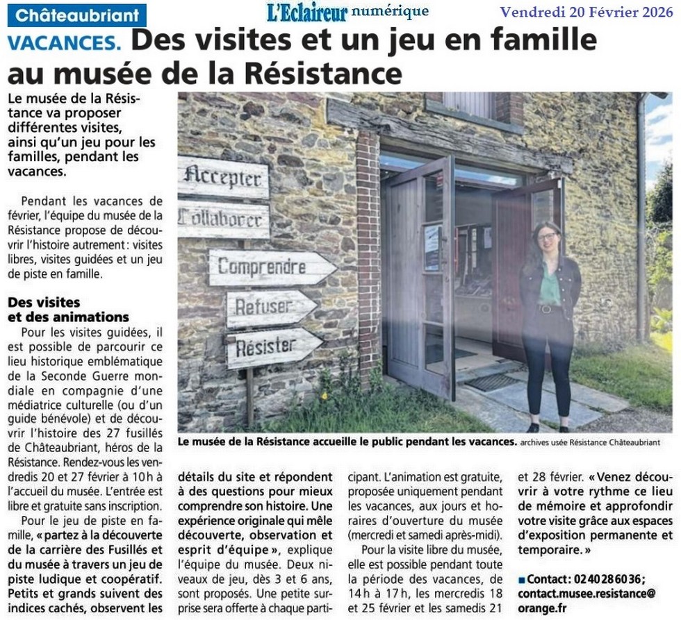 Des visites et un jeu en famille au musée de la Résistance - L’Eclaireur 20 février 2026